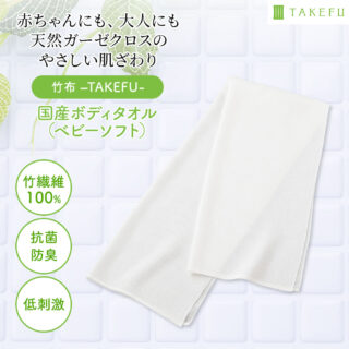 「これが竹からできているの?」と驚きの声があがるほど、柔らかく優しい肌ざわりのTAKEFU(竹布)はサスティナブルな竹からできています。 肌の弱い方・アトピーの方、生まれたての赤ちゃんも安心して使えるのが“SDGsな癒しの布”がTAKEFU(竹布)です。